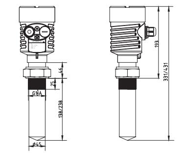 2. SKD55棒式防腐雷達(dá)物位計(jì)外型尺寸圖
