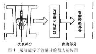 從目前的狀況看,玻璃管浮子流量計和塑料管浮子流量計已經(jīng)基本成型,且應(yīng)用比較成熟。而金屬管浮子流量計由于應(yīng)用場合的結(jié)構(gòu)的特殊性決定了它的市場很大,改進(jìn)的空間也很廣。一般來說,金屬管浮子流量計大多由浮子錐管、傳感轉(zhuǎn)換器兩部分構(gòu)成。也有少數(shù)包含智能信號處理器。其中浮子錐管、傳感轉(zhuǎn)換器屬于傳感部分,智能信號處理器是傳感部分的后續(xù)處理單元。傳感部分負(fù)責(zé)采集信號,獲取浮子高度、流量的相關(guān)信息;智能信號處理器是處理傳感部分采集的信息,進(jìn)行流量顯示,置系數(shù),和遠(yuǎn)傳輸出。智能浮子流量計的結(jié)構(gòu)見圖1.